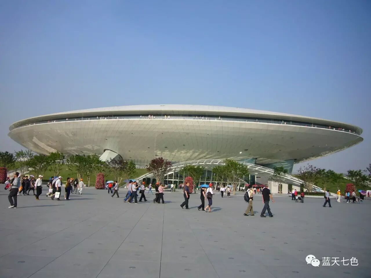 上海世博演藝中心造型呈飛碟狀,不同角度和不同空間會呈現(xiàn)出不同形態(tài)。白天如“時空飛梭”、似“藝海貝殼”;夜晚則夢幻迷離,恍如“浮游都市”。 建筑以西北側(cè)盧浦大橋作為底景集中式布局,柔和的建筑形體融于濱江公園綠地之中;